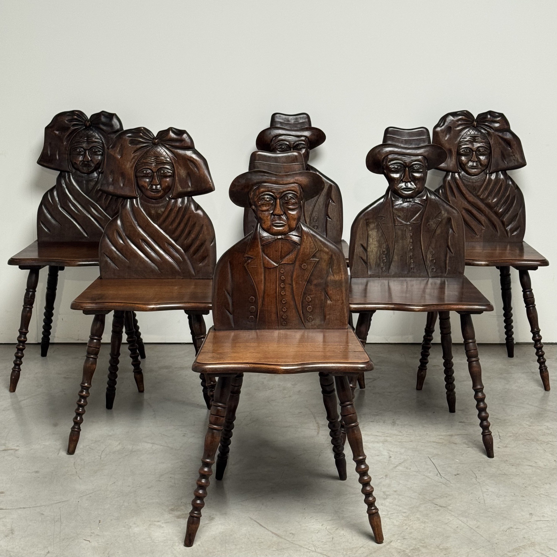 Unique collection of 6 french folkart chairs c.1900