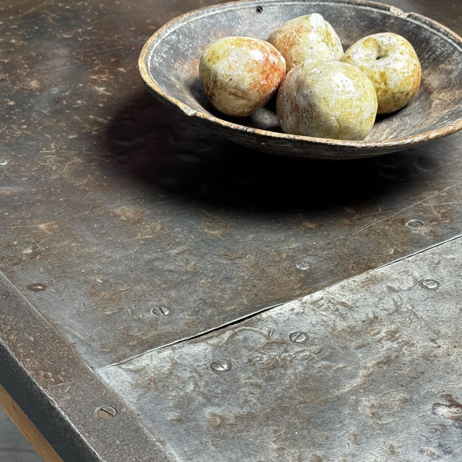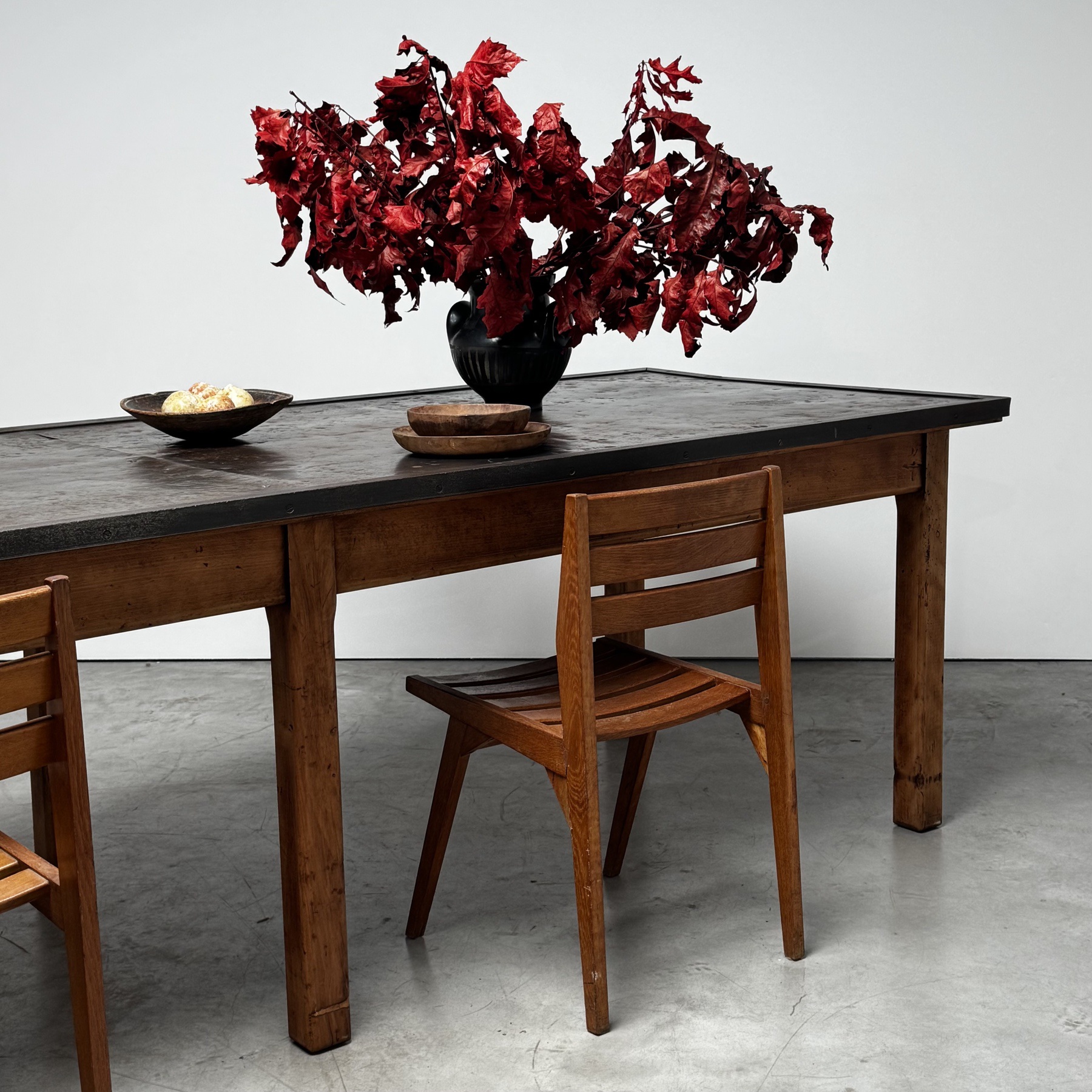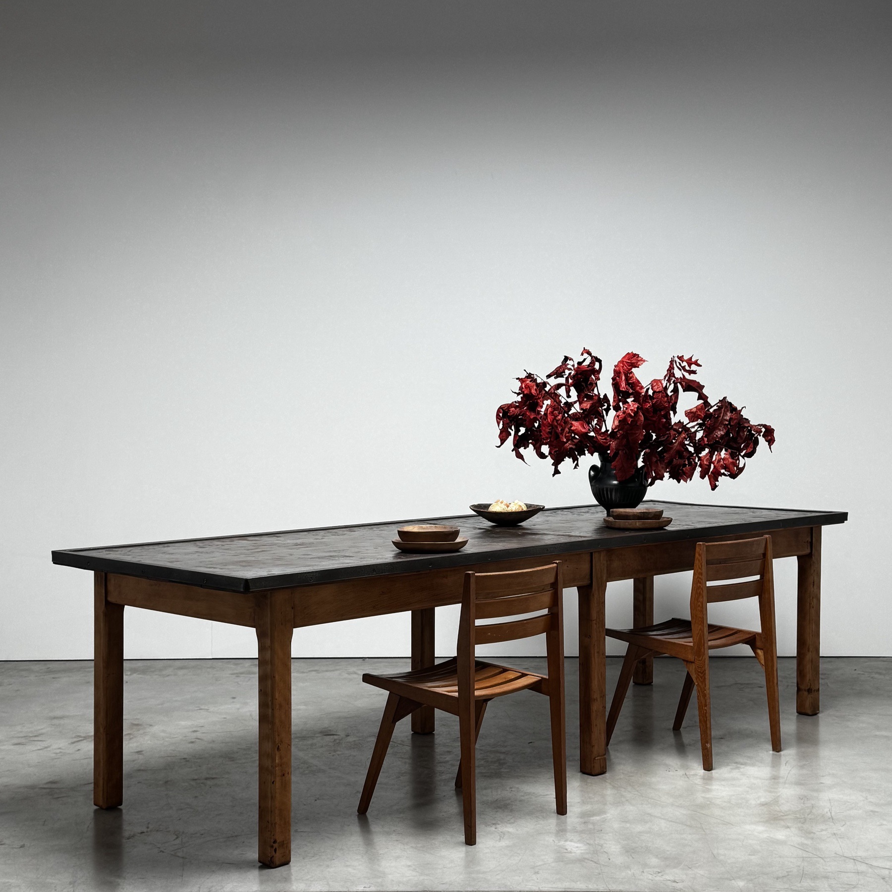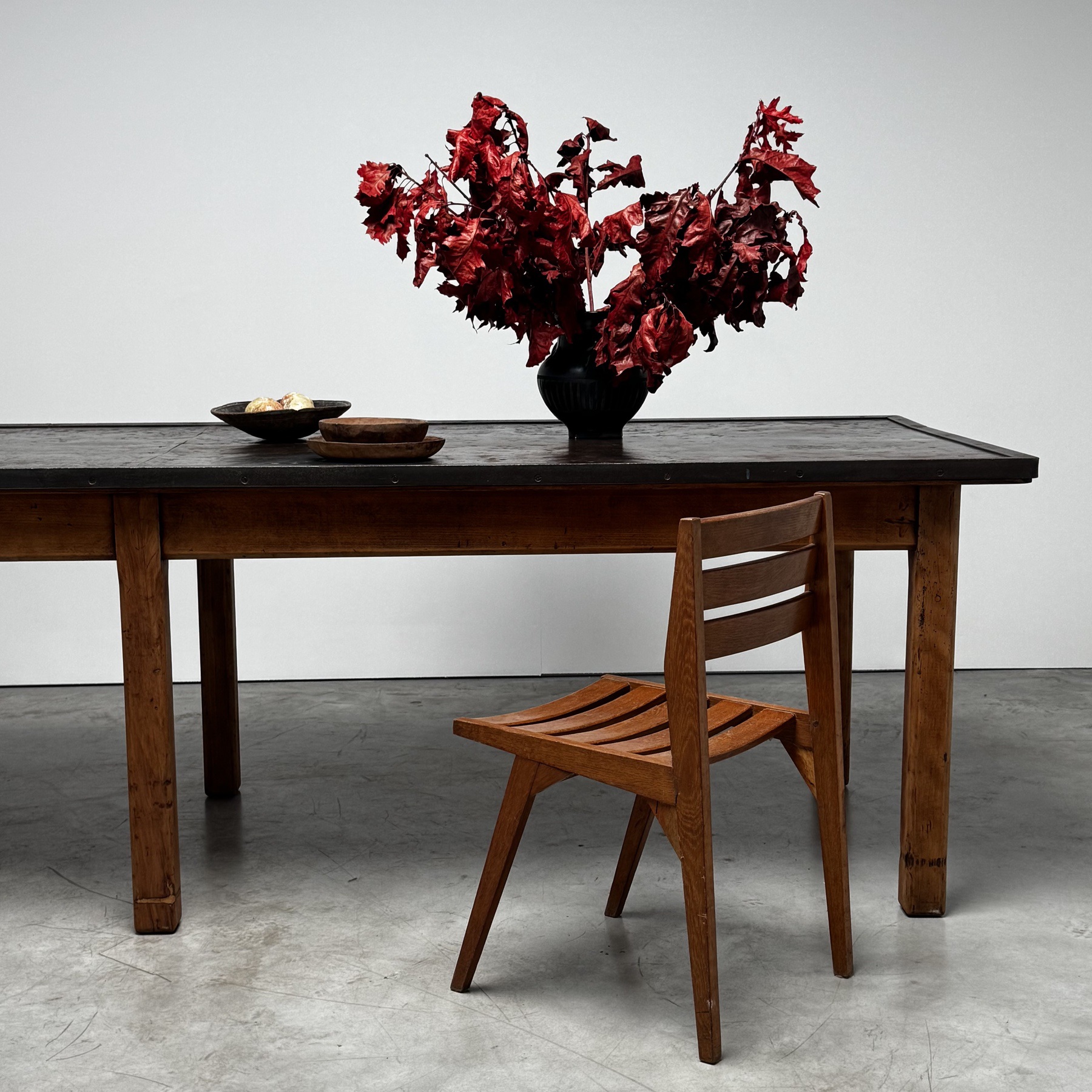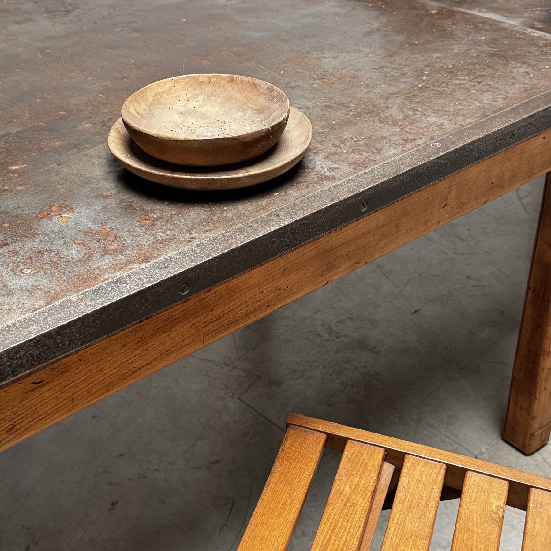 Nice large french work table with a beautiful original metal top