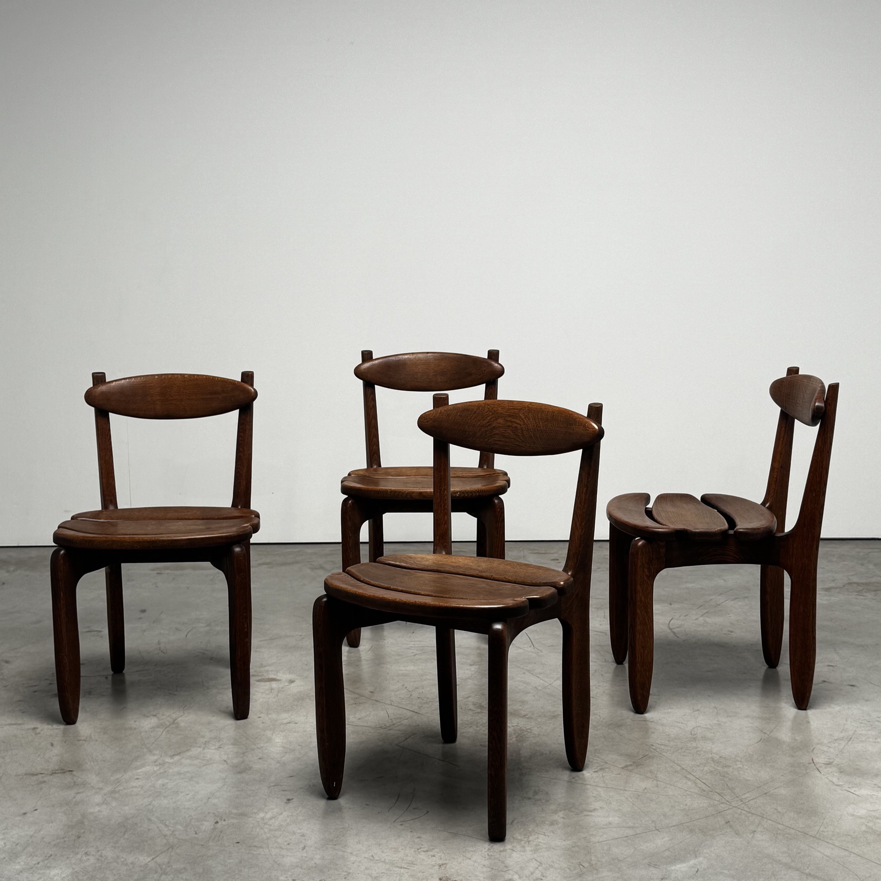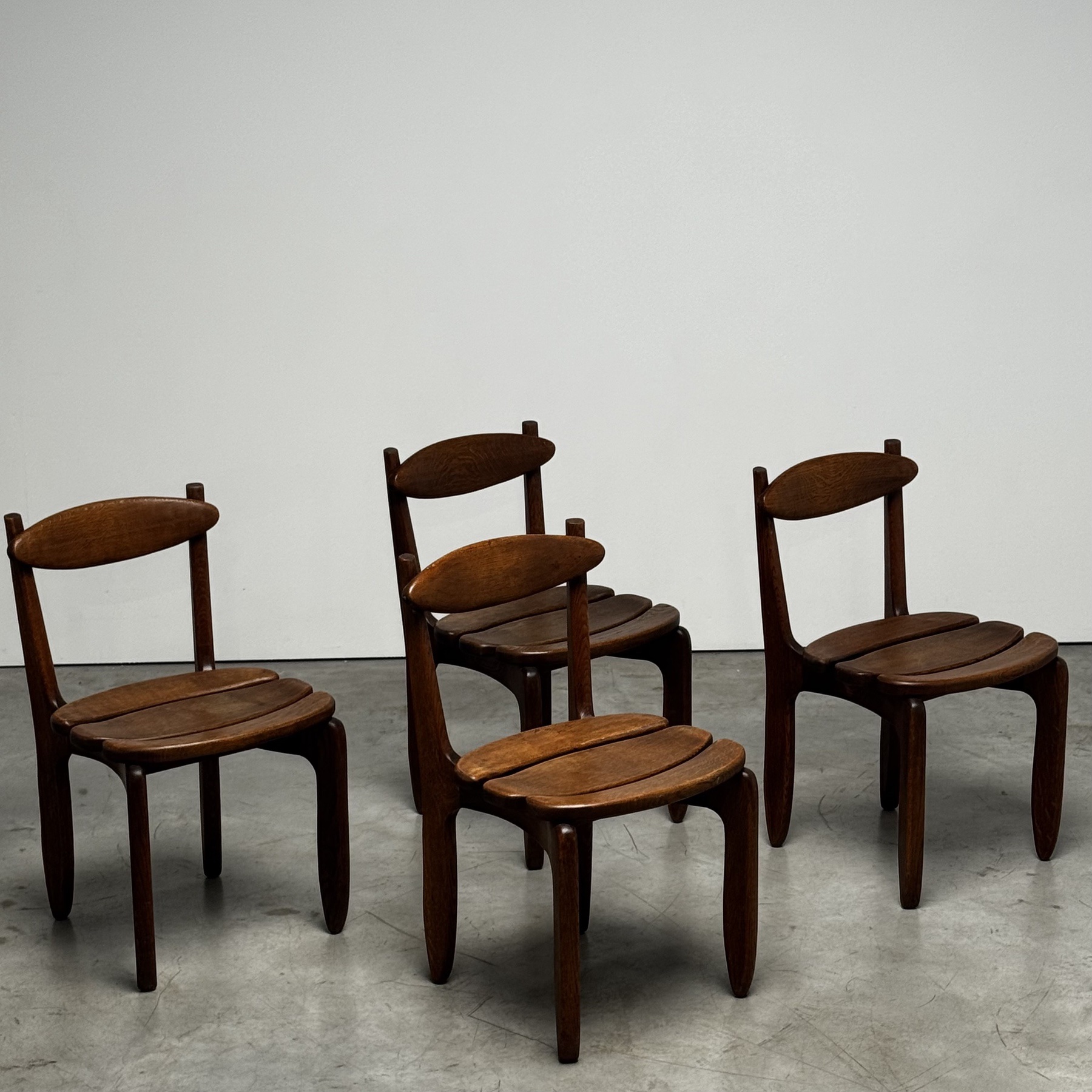 Nice set of 4 midcentury oak chairs by Guillerme and Chambron c.1960