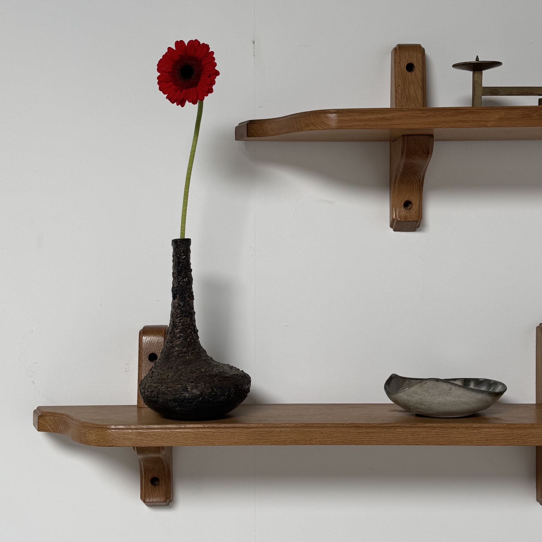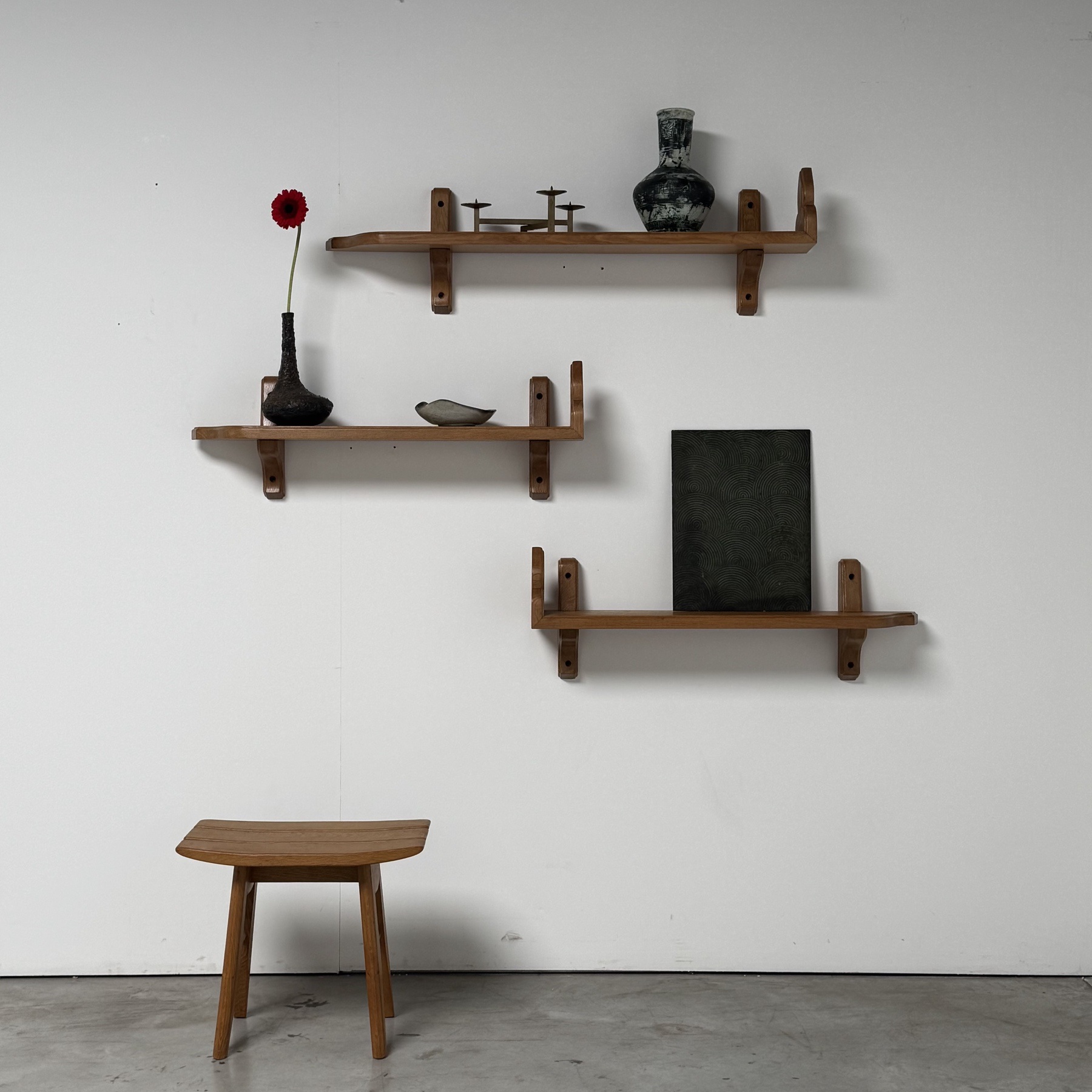 Unusual Collection of 3 midcentury oak shelves by Guillerme and Chambron c.1960