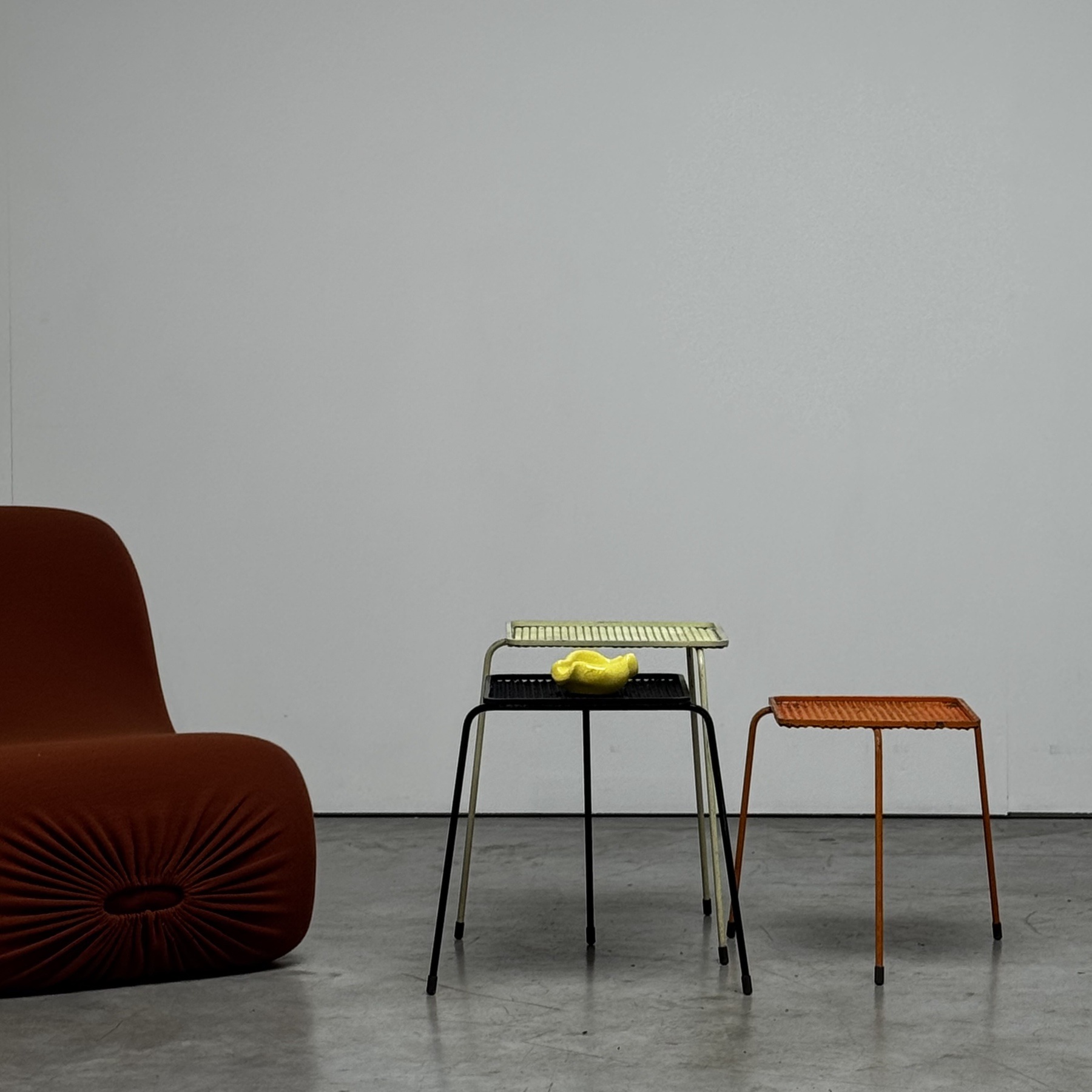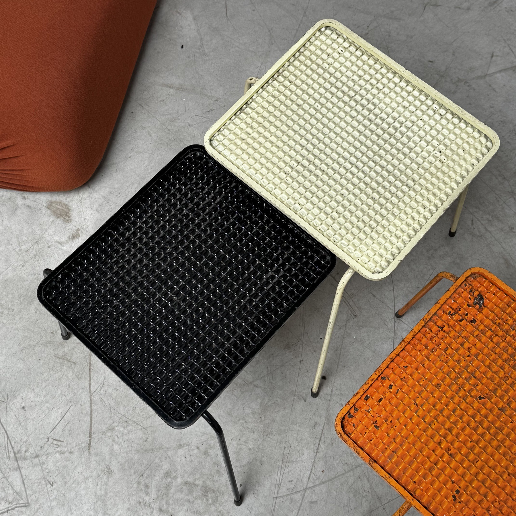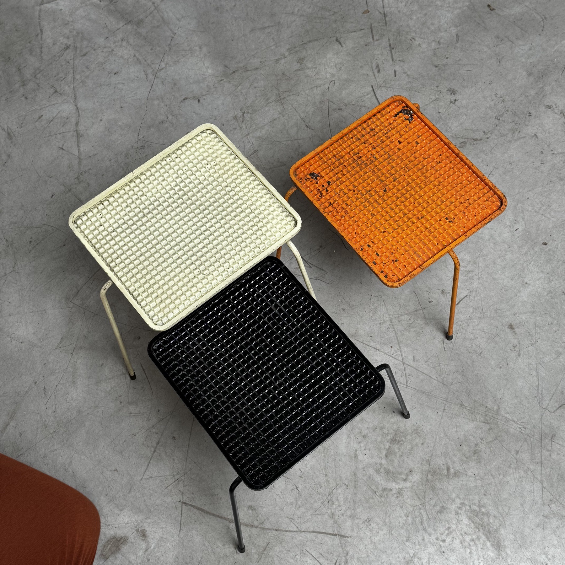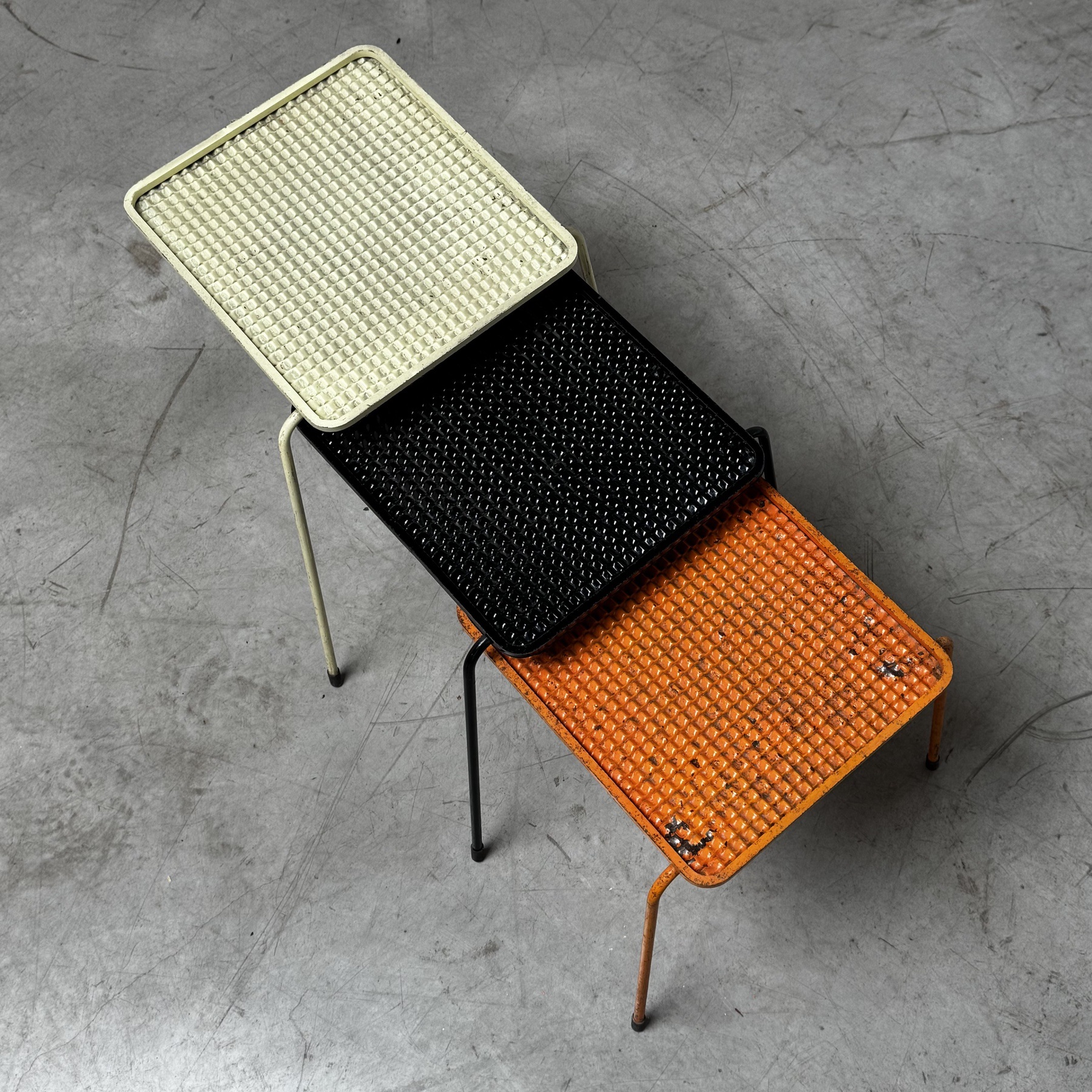 Beautiful painted neasting tables by Matthieu Mategot